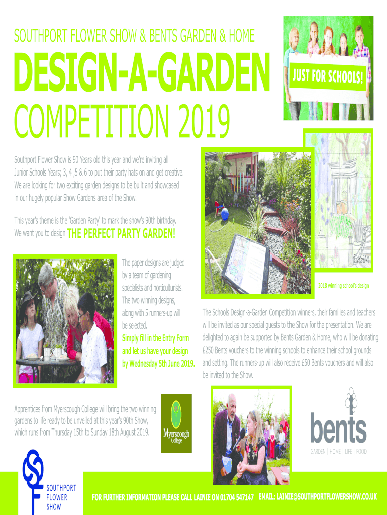 SOUTHPORT FLOWER SHOW & BENTS GARDEN & HOMEDESIGNAGARDENJUST FOR SCHOOLS!COMPETITION 2019 Southport Flower Show is 90 Years old this year and were inviting all Junior Schools Years; 3, 4, 5 & 6 to