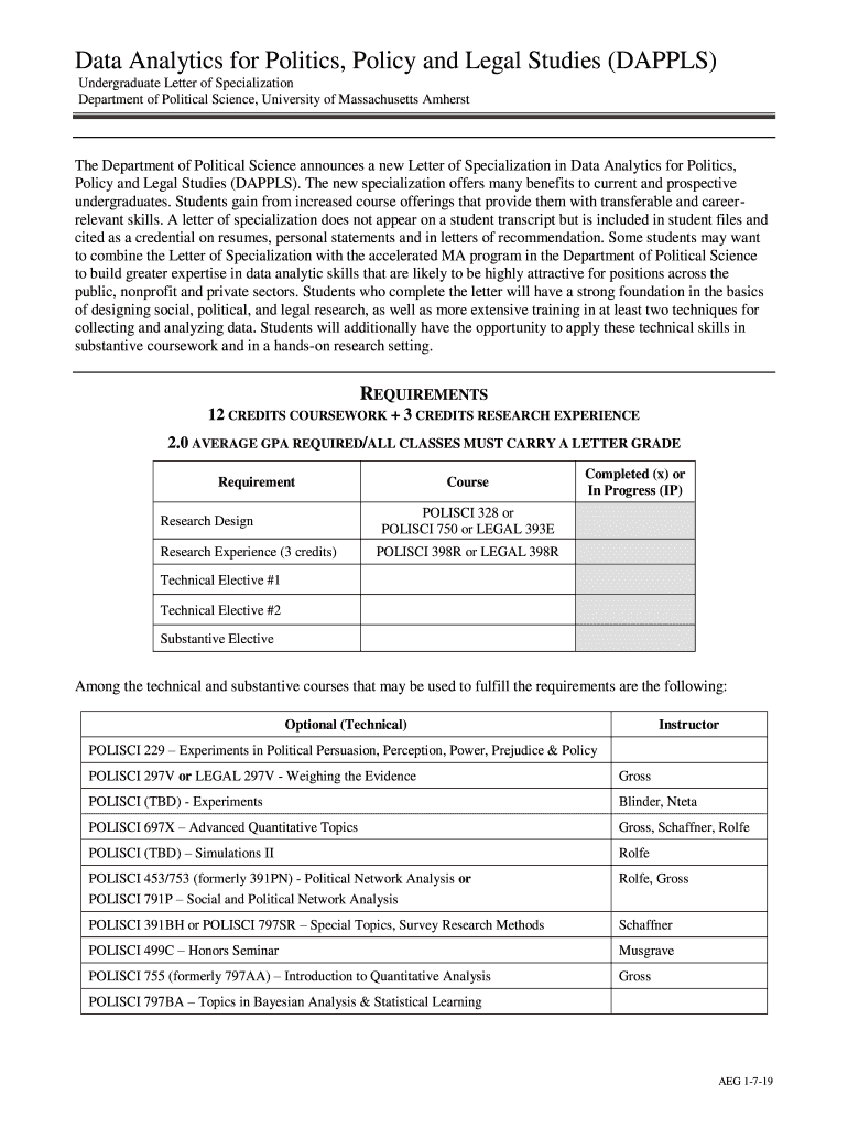 Department of Political Science, University of Massachusetts Amherst Department of Political Science