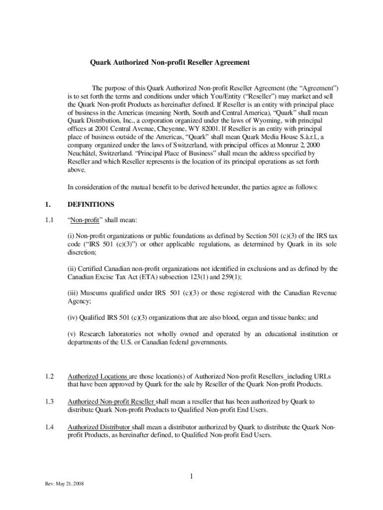 Get the free 1 Quark Authorized Non-profit Reseller Agreement