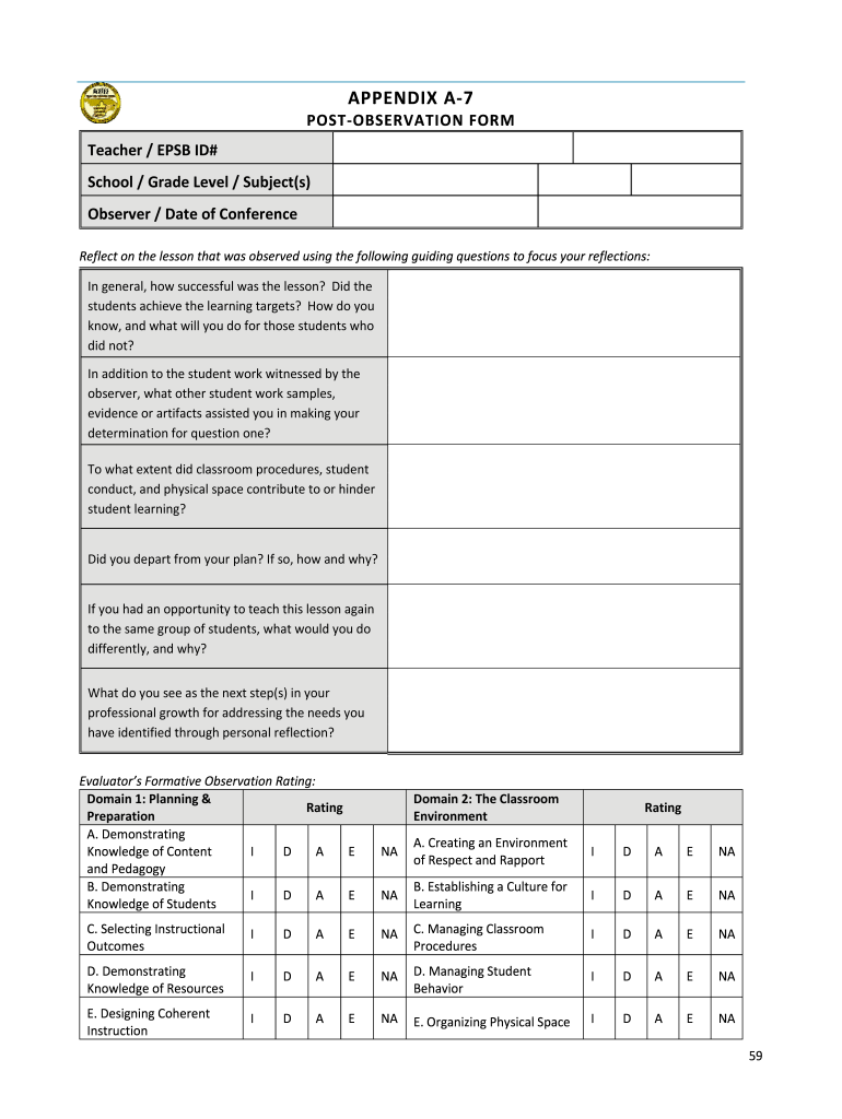 Get the free POST OBSERVATION FORM ID# Grade Level Subject(s) Date