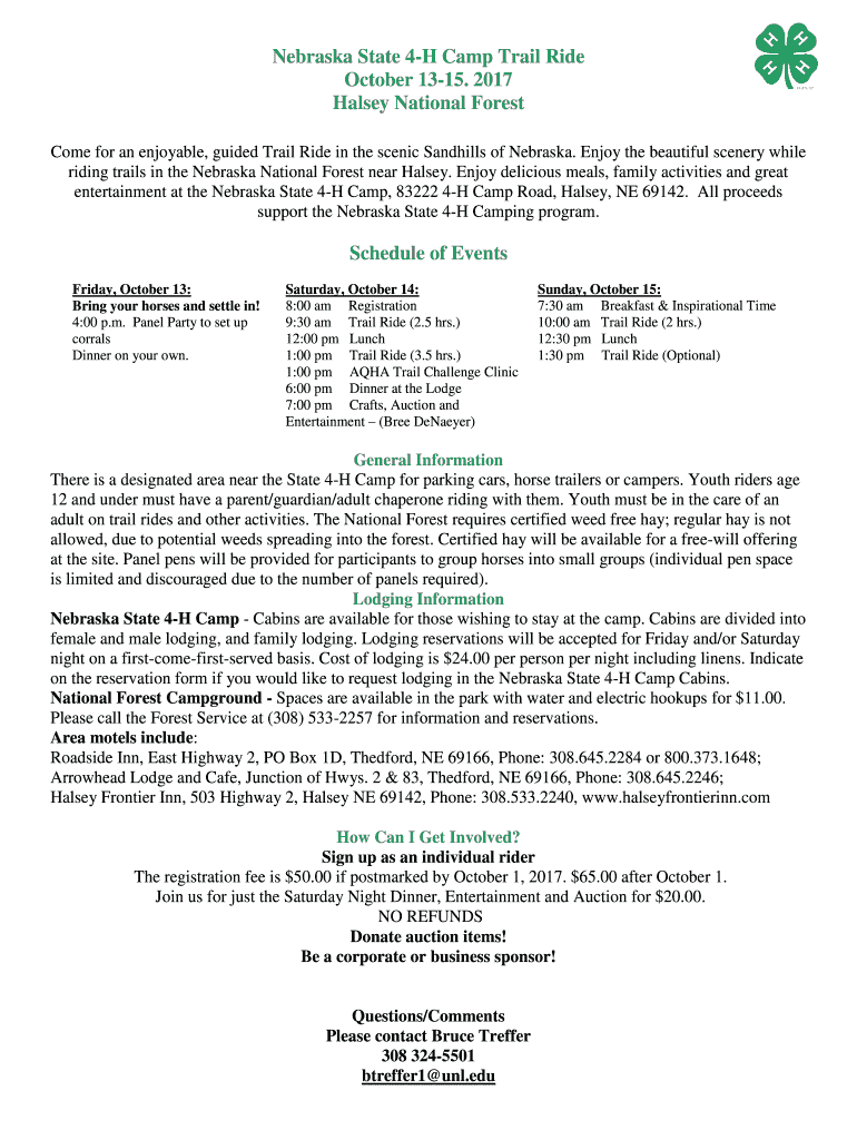 Get the free Nebraska State 4-H Camp Trail Ride October 13-15. 2017 ...