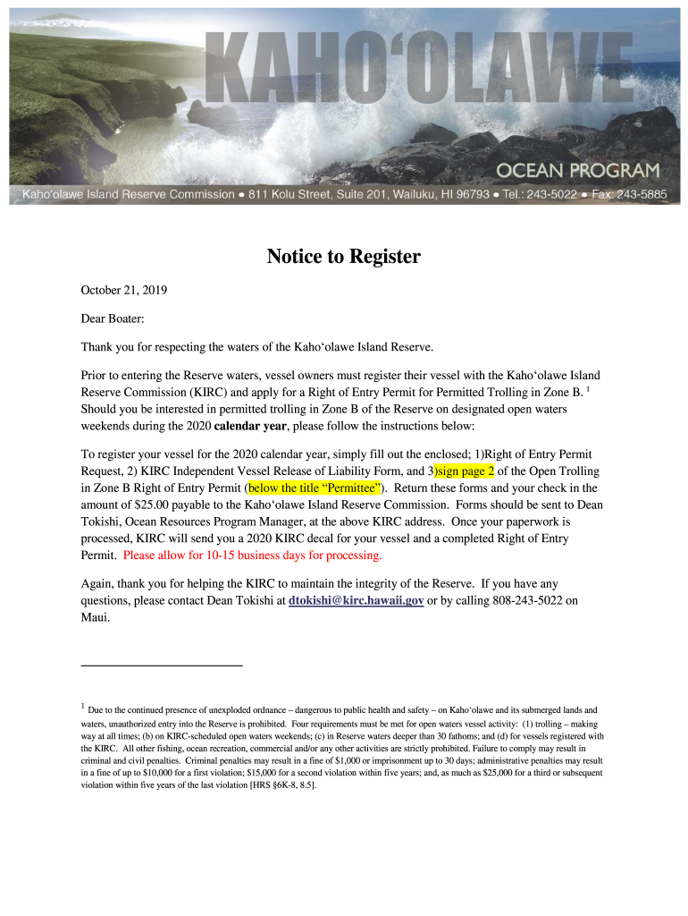 Get the free Notice to Register - Kahoolawe