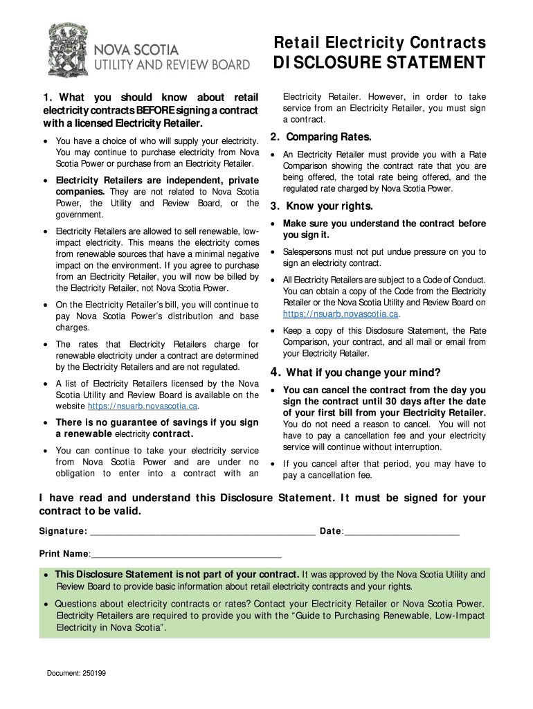 How to fill out retail electricity contracts disclosure