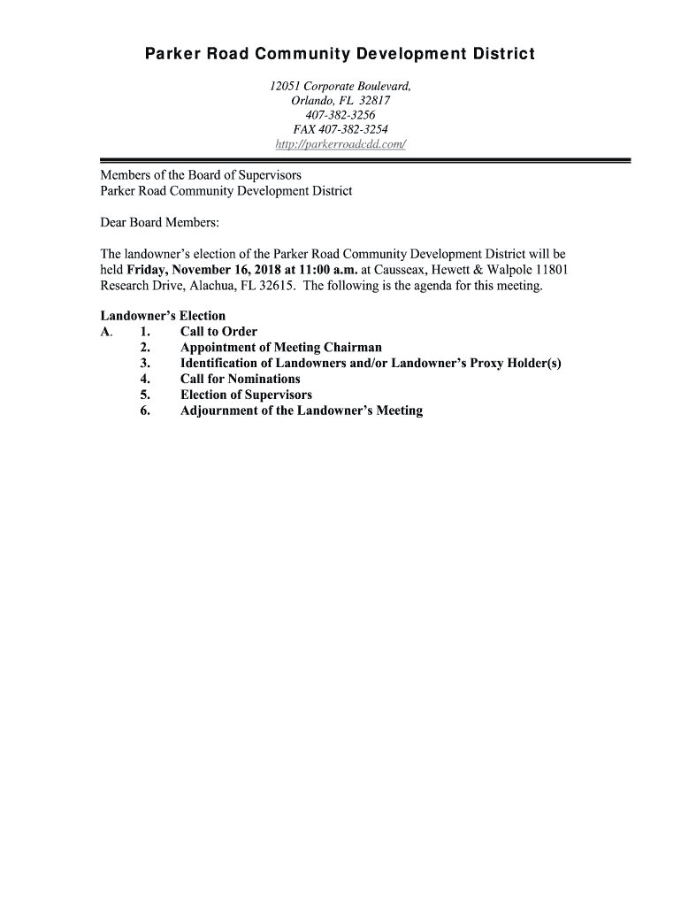 Get the free XXX Community Development District - Parker Road CDD