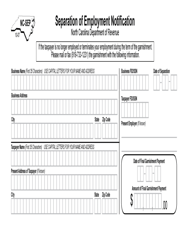 Filing the NC-SEP form is important for both employers and employees. For employers, it guarantees compliance with legal obligations, reducing the risk of potential liabilities related to tax withholding. For employees, timely submission aids in the efficient handling of garnishment processes, ensuring seamless transitions in tax responsibility following employment termination. Filing helps prevent complications and misunderstandings concerning outstanding garnishments.