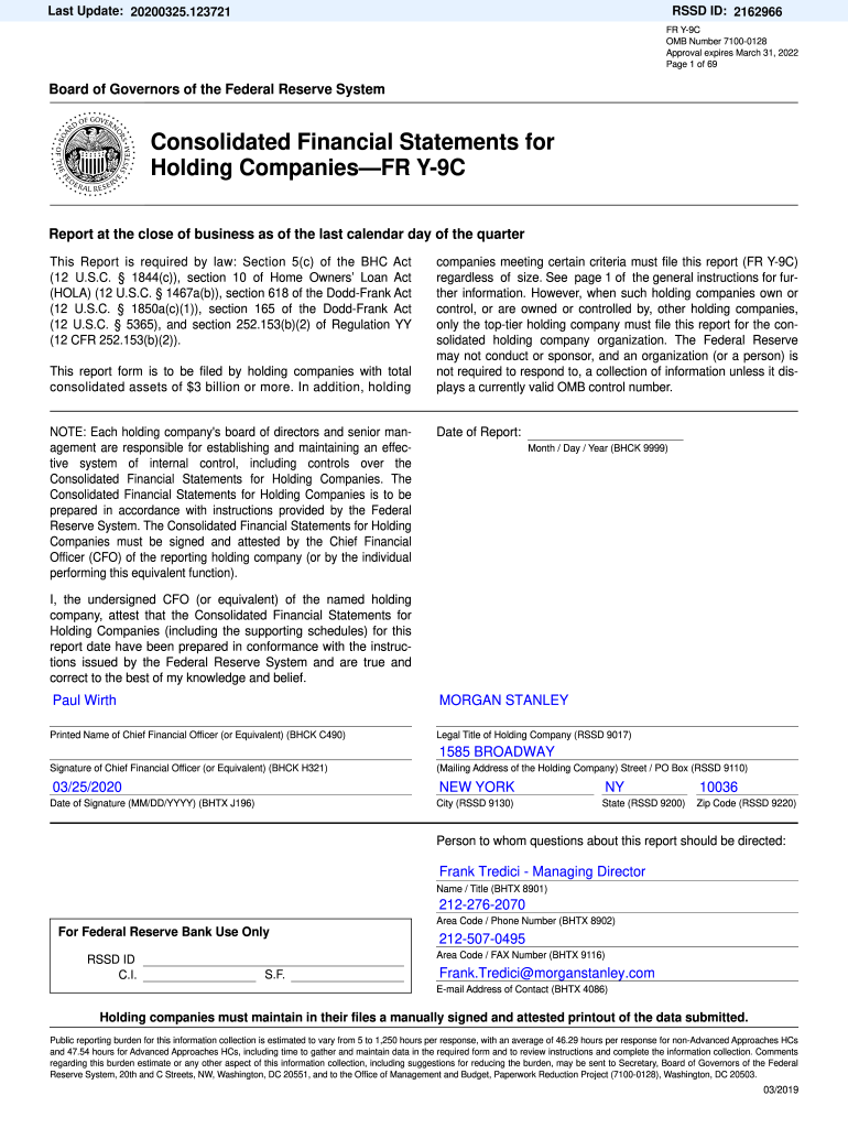 Last Update: 20200325.123721RSSD ID: 2162966 FR Y9C OMB Number 71000128 Approval expires March 31, 2022-Page 1 of 69Board of Governors of the Federal Reserve SystemConsolidated Financial Statements