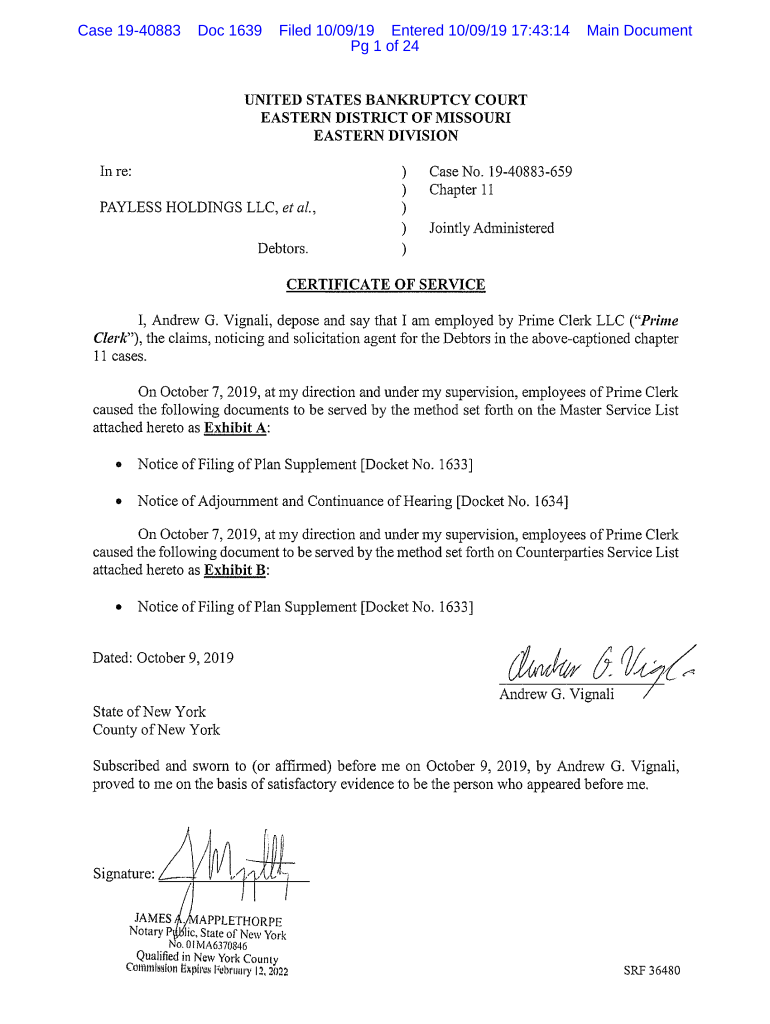 Case 1940883Doc 1639Filed 10/09/19 Entered 10/09/19 17:43:14 Pg 1 of 24Main Document Case 1940883Doc 1639Filed 10/09/19 Entered 10/09/19 17:43:14 Pg 2 of 24 Exhibits Again Document Case 1940883Doc