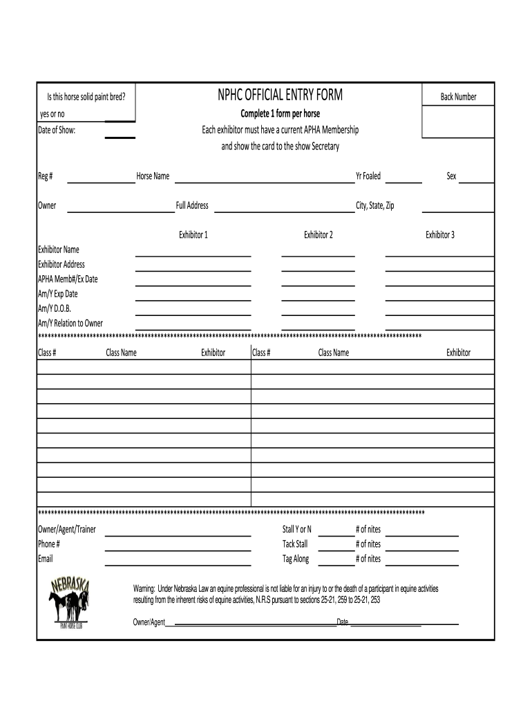 Get the free NPHC OFFICIAL ENTRY FORM - nebraskapainthorseclub.org