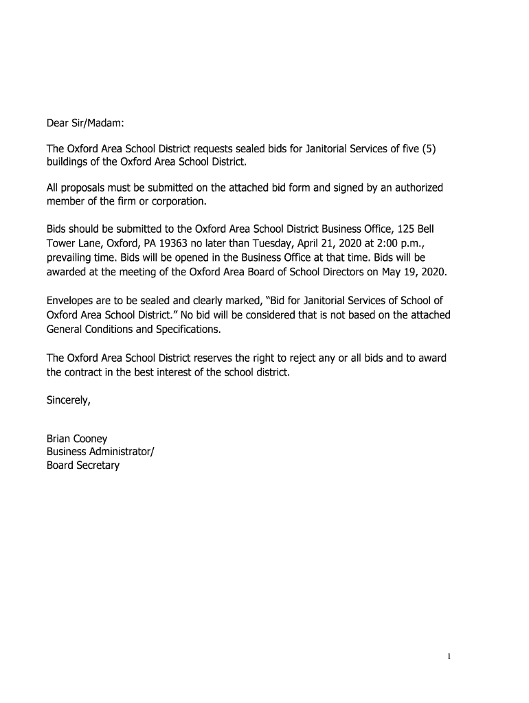 Get the free Dear Sir/Madam: The Oxford Area School District requests ...