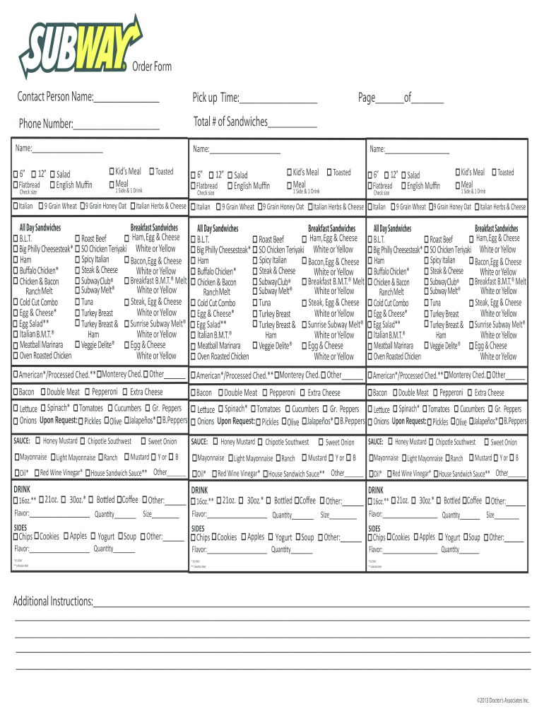 Get the free Subway Form - Fill Online, Printable ... - Subway Order Form