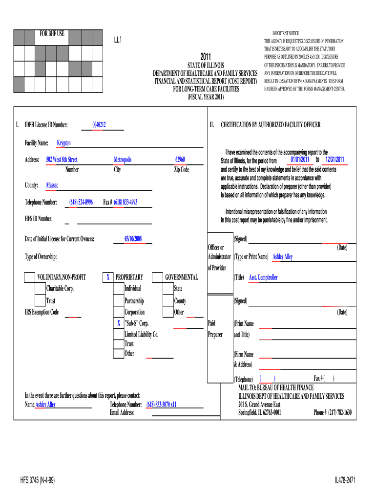 FINANCIAL AND STATISTICAL REPORT (COST REPORT)