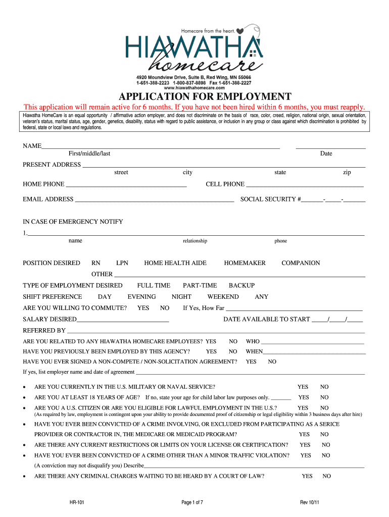 This application will remain active for 6 months. If you have not been hired within 6 months, you must reapply.