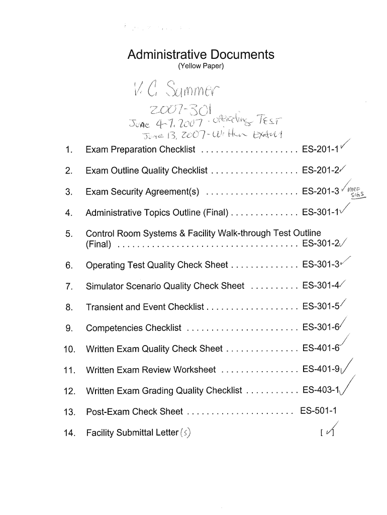 Ve Documents Administrative Administrate (Yellow Paper) Paper) (Yellow ii J2 7N7C.1. 1.ES2011 / Exam Preparation Checklist .................... ES201/2.2/ Exam Outline Quality Checklist ..................