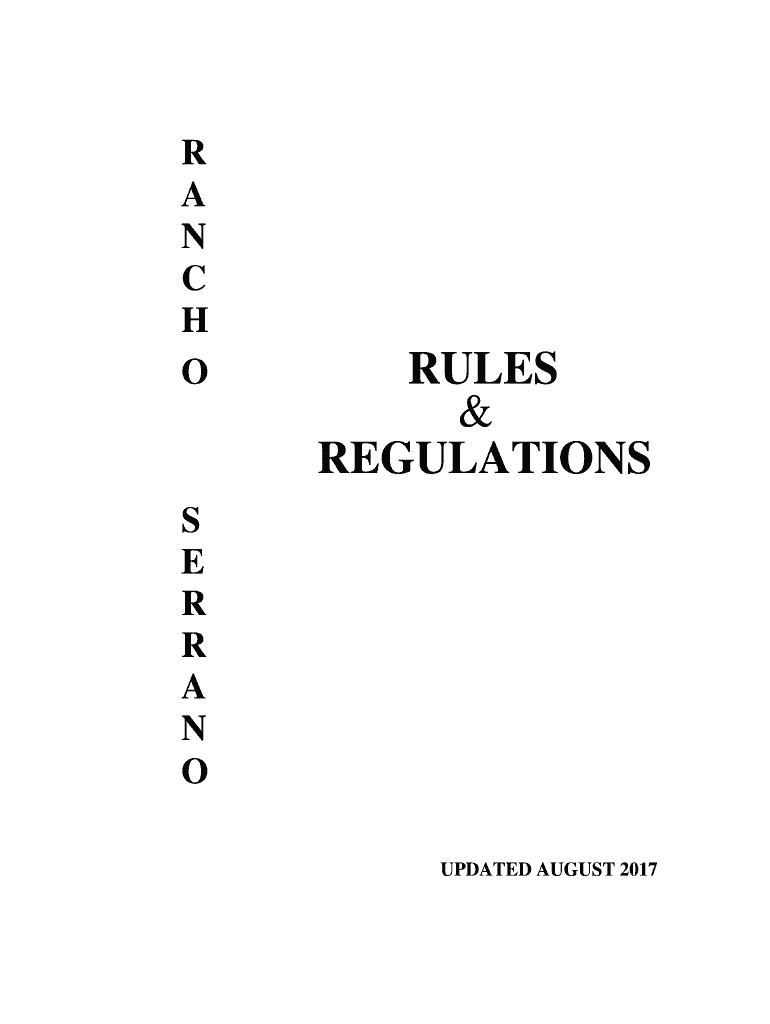R A N C HO RULES & REGULATIONS E R R A N O UPDATED AUGUST 2017TABLE OF CONTENTS PAGE INTRODUCTION2DEFINITIONS3RULES & REGULATIONS INTRODUCTION4ENFORCEMENT45COMMUNITY INFORMATION56COMMON AREA6RENTAL