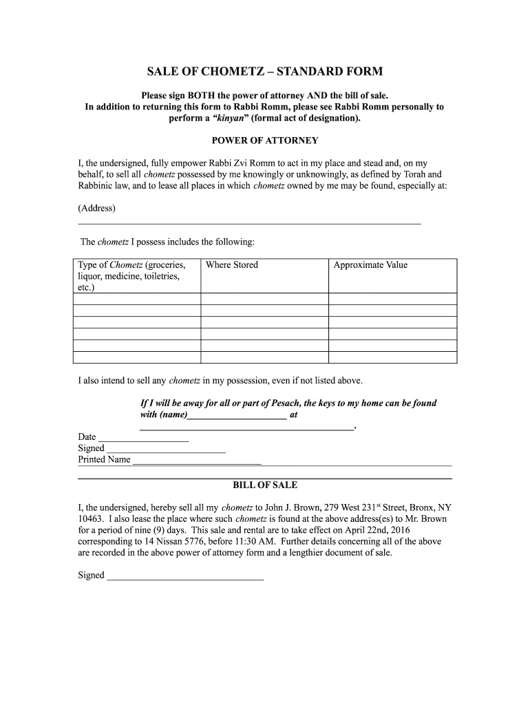 Get the free SALE OF CHOMETZSTANDARD FORM