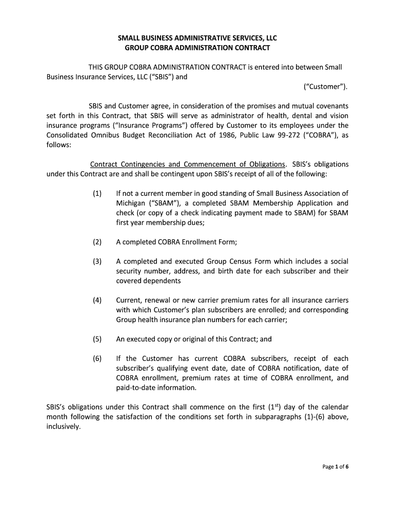 THIS GROUP COBRA ADMINISTRATION CONTRACT is entered into between Small
