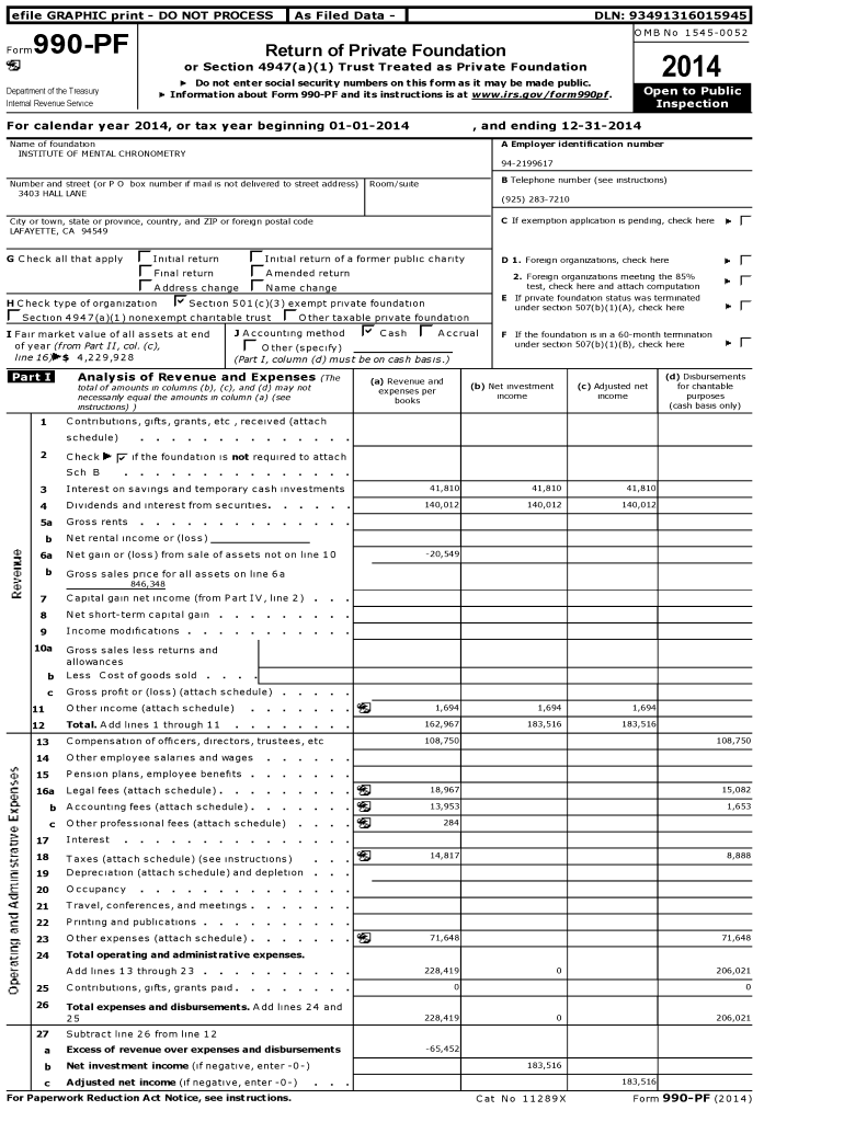 Le file Topographic print DO NOT Process Filed Data DAN: 93491316015945 OMB No 15450052990PFReturn of Private Foundation2014or Section 4947(a)(1) Trust Treated as Private Foundation 0 Do not enter