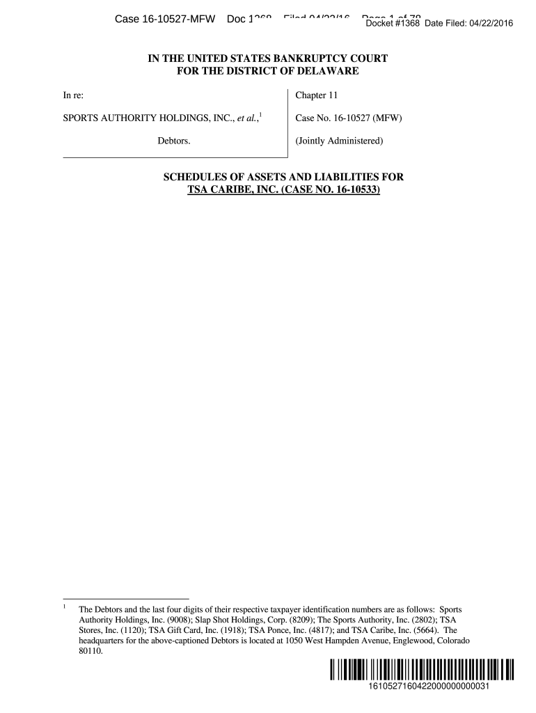 In re:Chapter 11SPORTS AUTHORITY HOLDINGS, INC.,