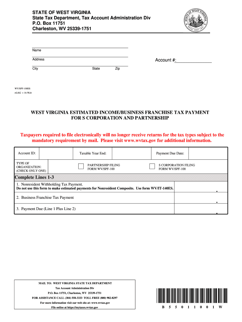The West Virginia Estimated Income Tax Payment Form, known as the WV/SPF-100ES, is a crucial tool for taxpayers in West Virginia, particularly S corporations and partnerships. This form is used for making estimated income and business franchise tax payments, ensuring individuals and organizations remain compliant with state tax regulations. Understanding how to utilize this form efficiently is essential for proper tax management.