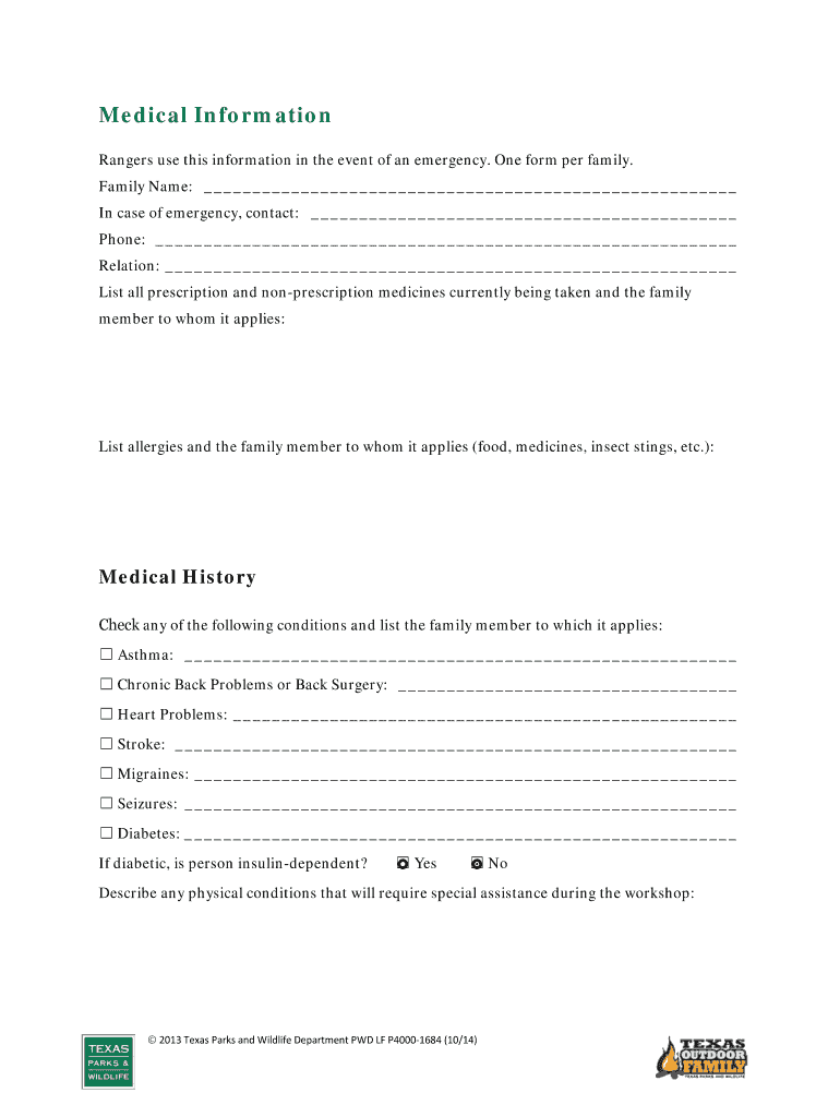 Get the free Texas Outdoor Family Welcome Packet