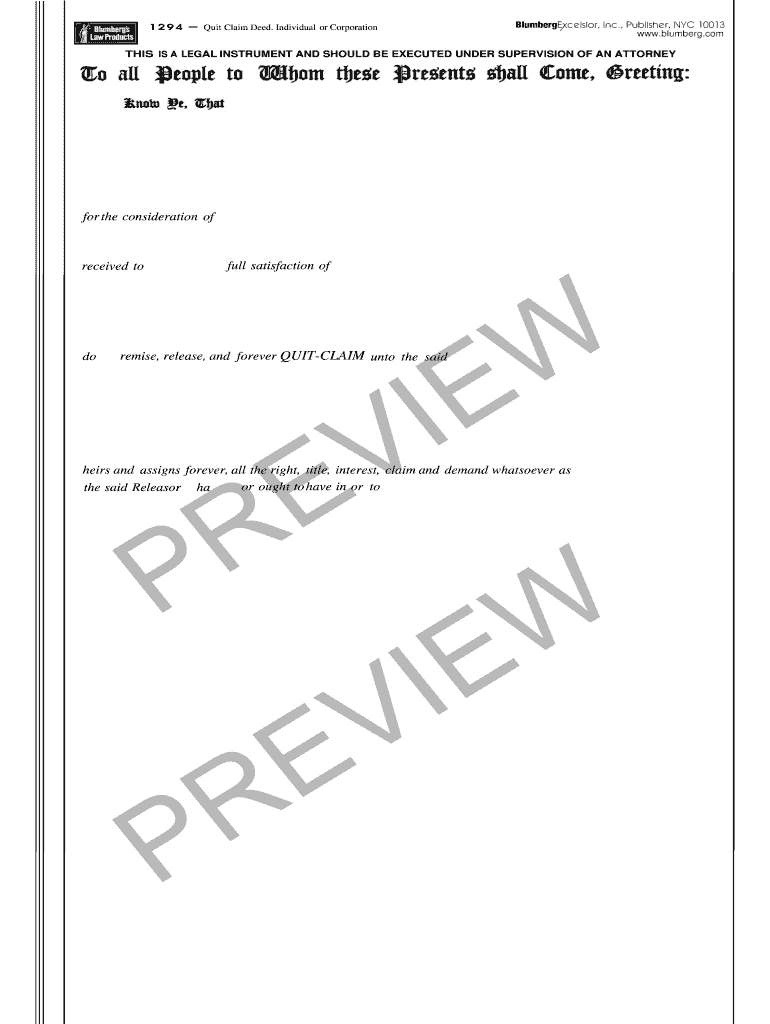 You will need the names and addresses of the Releasor and Releasee, the legal description of the property, the date of transfer, and the signature of the Notary. All of this information must be correct and complete.