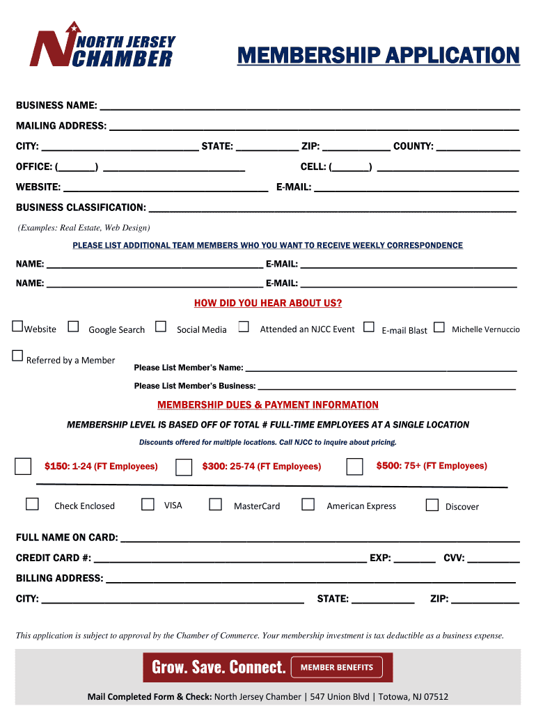 MEMBERSHIP APPLICATION BUSINESS NAME: MAILING ADDRESS: CITY: STATE: ZIP: COUNTY: OFFICE: () CELL: () WEBSITE: EMAIL: BUSINESS CLASSIFICATION: (Examples: Real Estate, Web Design) PLEASE LIST ADDITIONAL