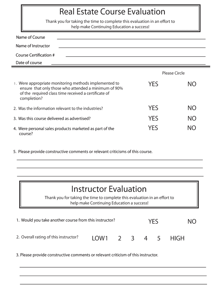 By utilizing the real estate course evaluation form, institutions can systematically assess the effectiveness of their courses and the qualifications of their instructors.