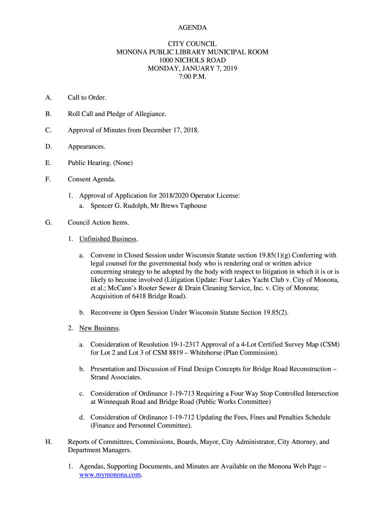 A. Call to Order. B. Roll Call and Pledge of Allegiance. C. Approval of Minutes from December