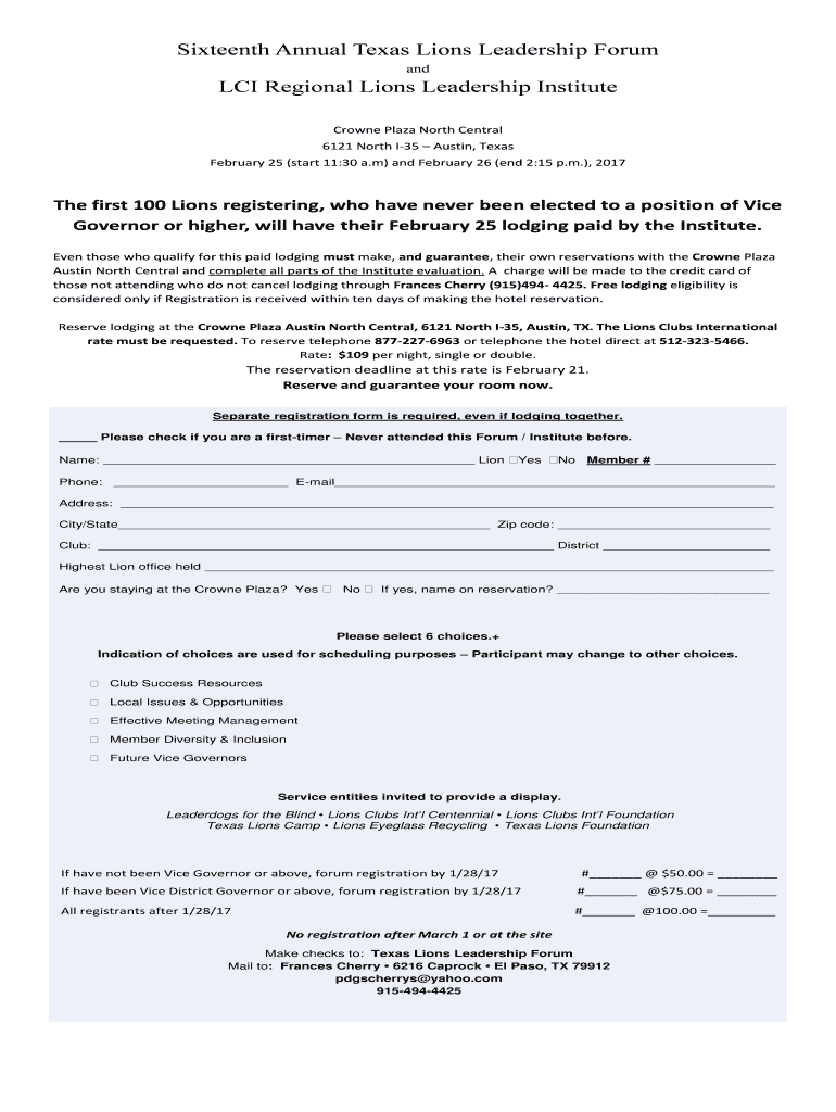 Fill out your texas lions leadership forumtexas online with pdfFiller!