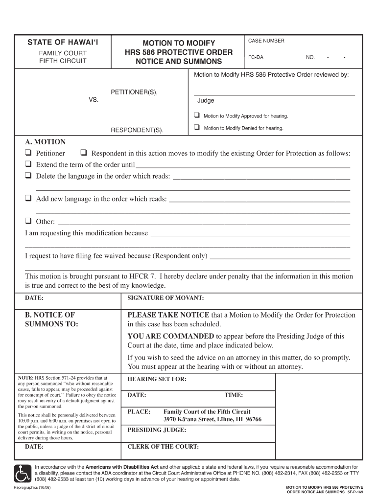 Get the free Motion to Modify HRS 586 Protective Order