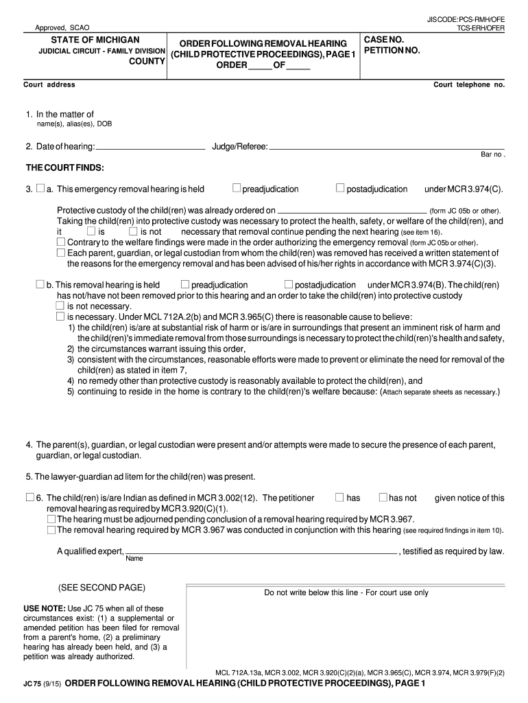 Get the free Michigan Order Following Removal Hearing