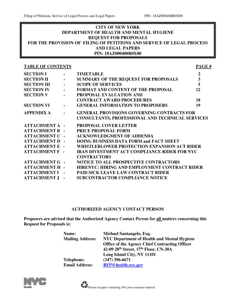 Filing of Petitions, Service of Legal Process and Legal Papers PIN: 18AZ000400R0X00CITY OF NEW YORK