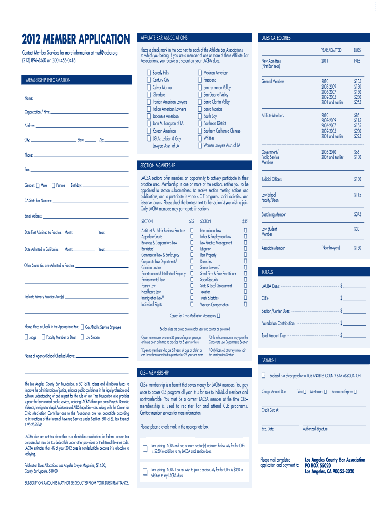 The LACBA Membership Application is a business form used by legal professionals to apply for membership in the Los Angeles County Bar Association.