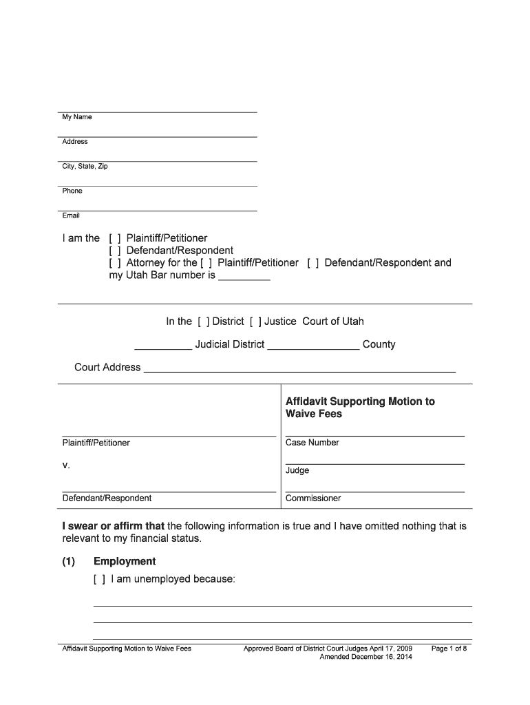 Who Needs the Utah Affidavit Supporting Motion to Waive Fees?