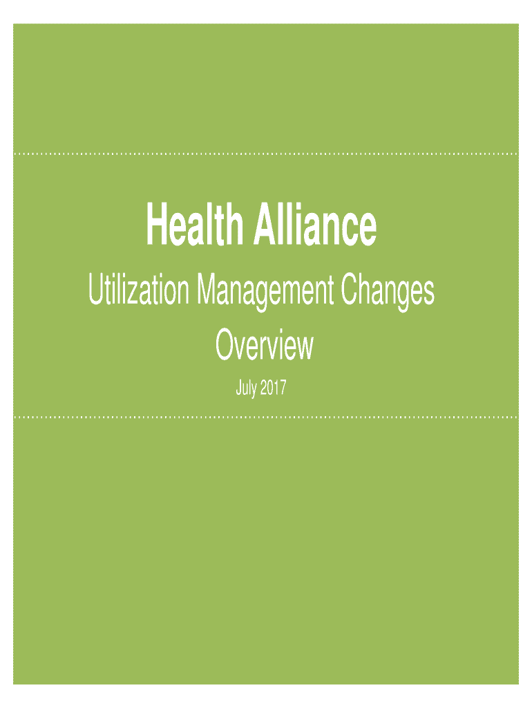 Health Alliance Utilization Management Changes Overview July 2017Agenda Decision OverviewUtilization Management Program Changes Network Education and Training Expansions and modifications to preauthorization