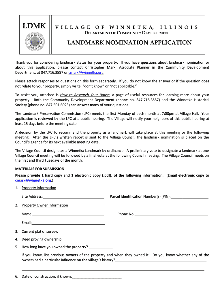 Get the free Thank you for considering landmark status for your property