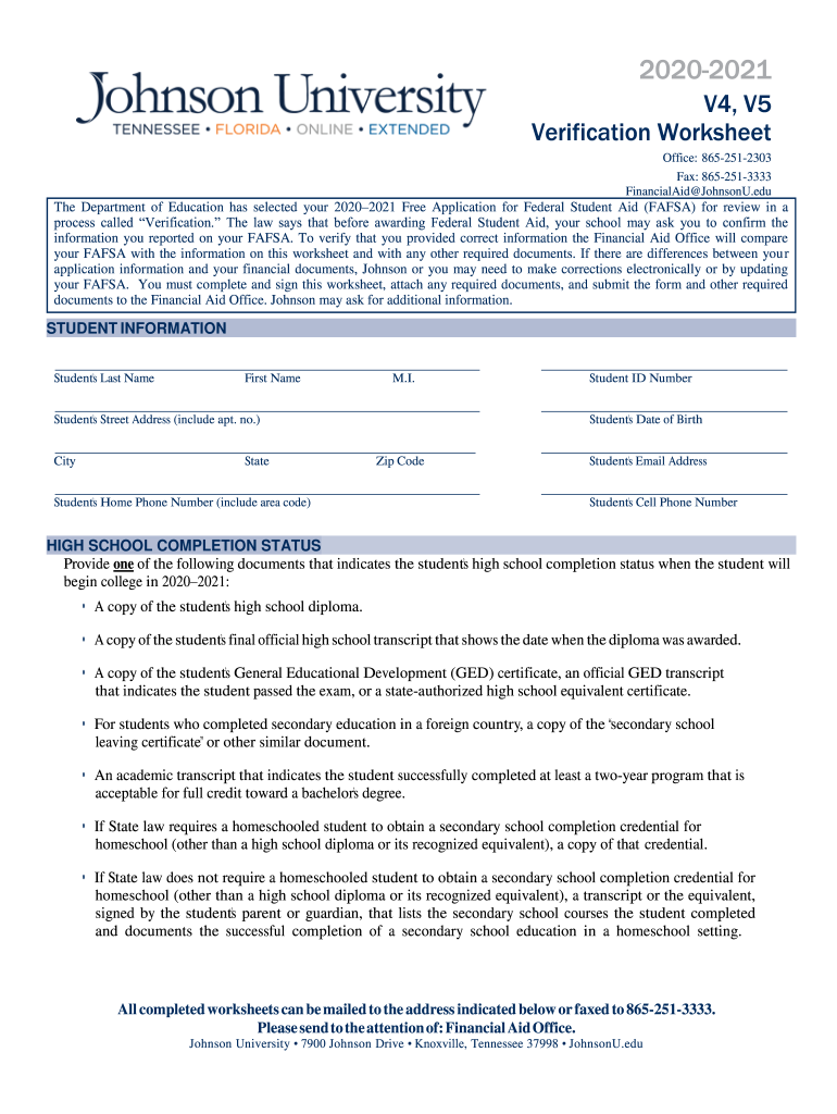 FinancialAid@JohnsonU.eduThe Department of Education has selected your 20202021 Free Application for Federal Student Aid (FAFSA)