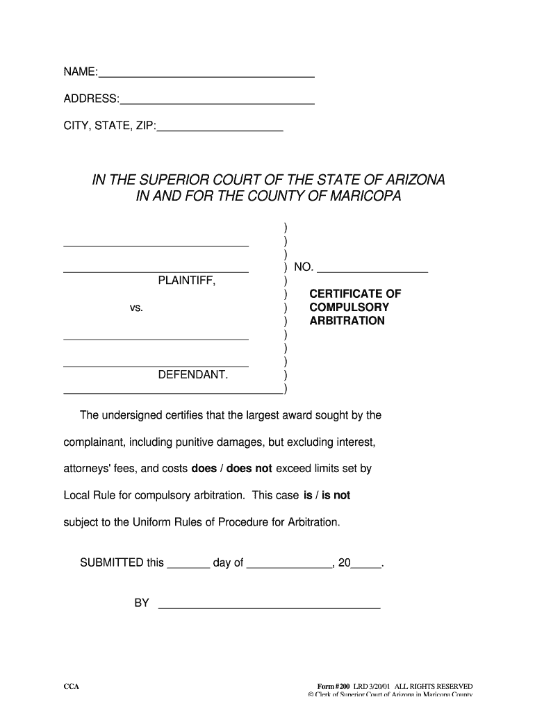 Get the free Arizona Compulsory Arbitration Certificate