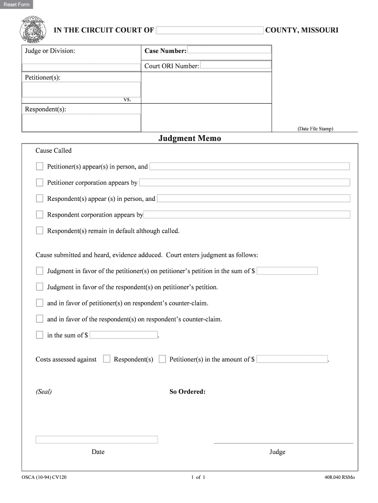Get the free Missouri Circuit Court Judgment Memo