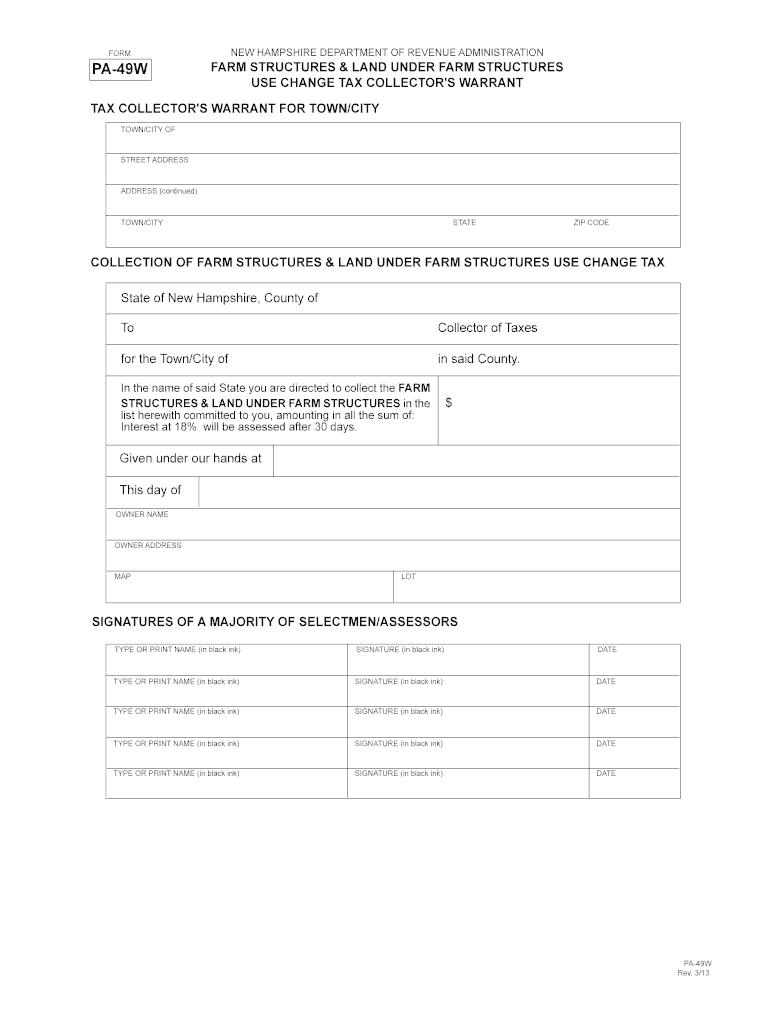 USE CHANGE TAX COLLECTOR×39’S WARRANT. FORM. PA-49W. SIGNATURES OF A MAJORITY OF SELECTMEN/ASSESSORS. TYPE OR PRINT NAME (in ...