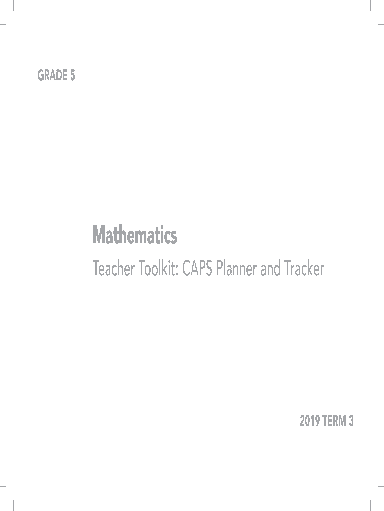 GRADE 5Mathematics Teacher Toolkit: CAPS Planner and Tracker2019 TERM 3CONTENTS A. About the Tracker and Resources 2 B. Lesson Preparation Key Steps 6 C. Trackers for Each Set of Approved Less 9 1.