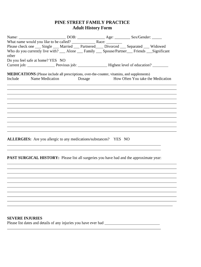 New Patient Adult Health History - Pine Street Family Practice template instructions