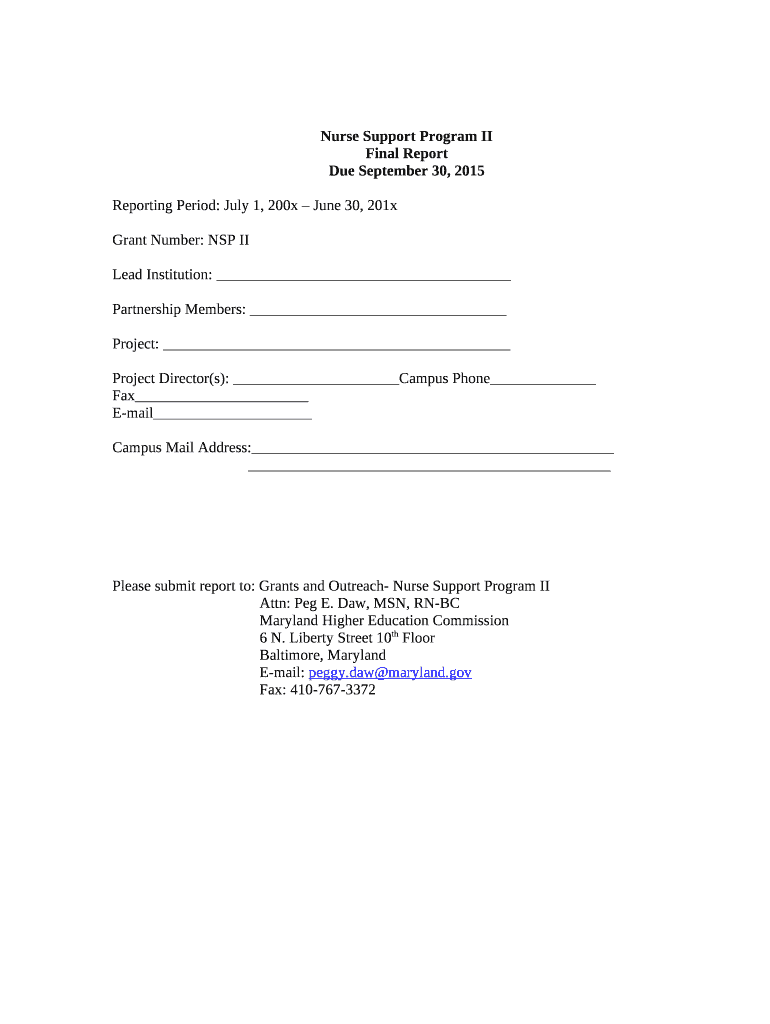 Instructions for the form NURSE SUPPORT PROGRAM II Request for Applications FY ...