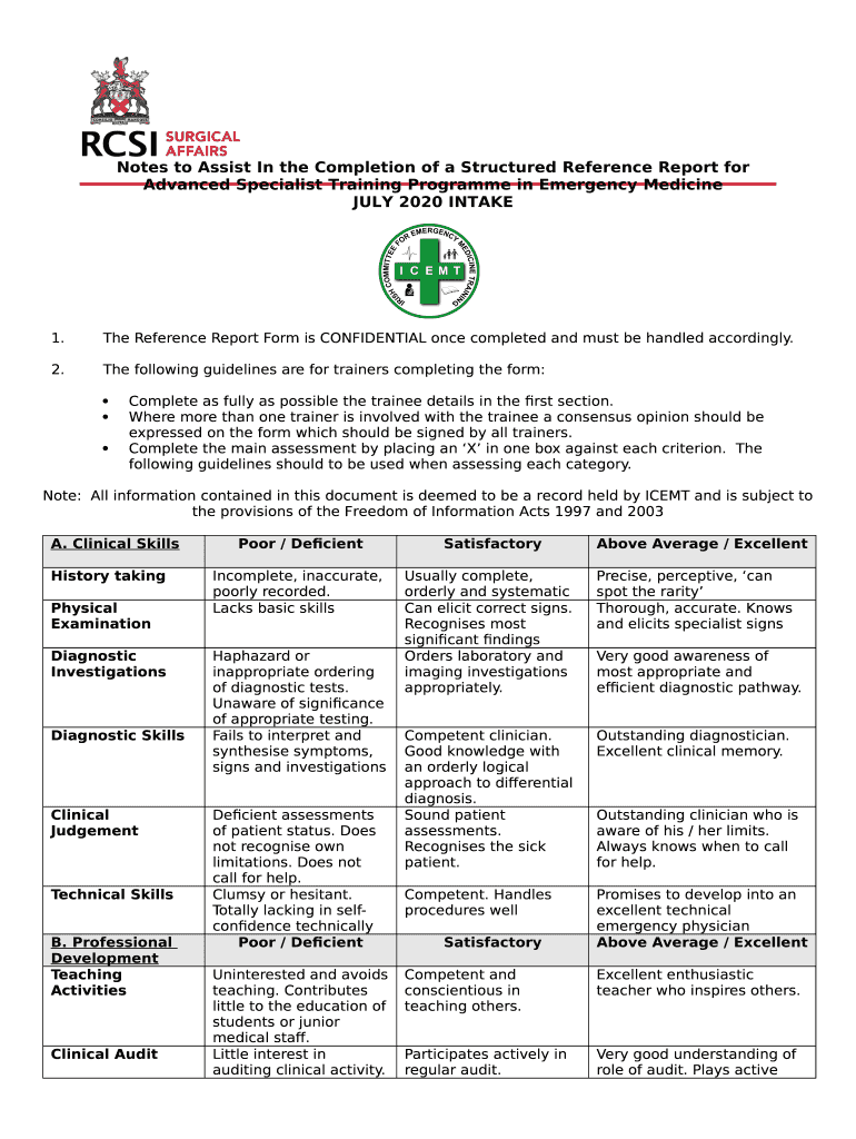 Notes to Assist In the Completion of a Structured Reference Report for: frequently asked questions