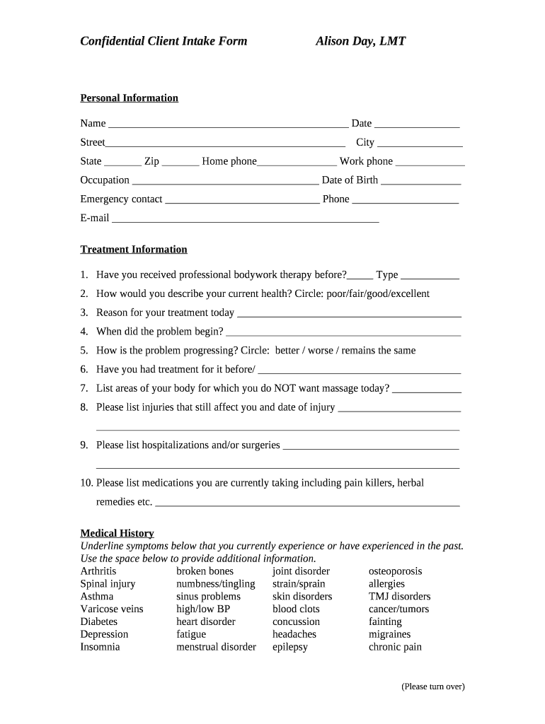 Instructions for the form Name: Address: City: State: Zip: Home Phone: - - Work Phone ...