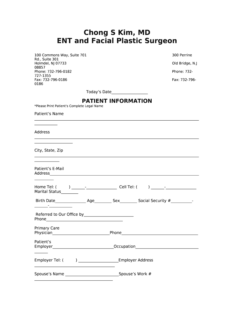What is The Center for Facial Plastic & Head & Neck Surgery Form?