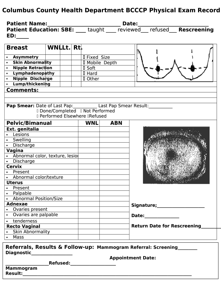 Instructions for the form Columbus County Health Department BCCCP Physical Exam Record