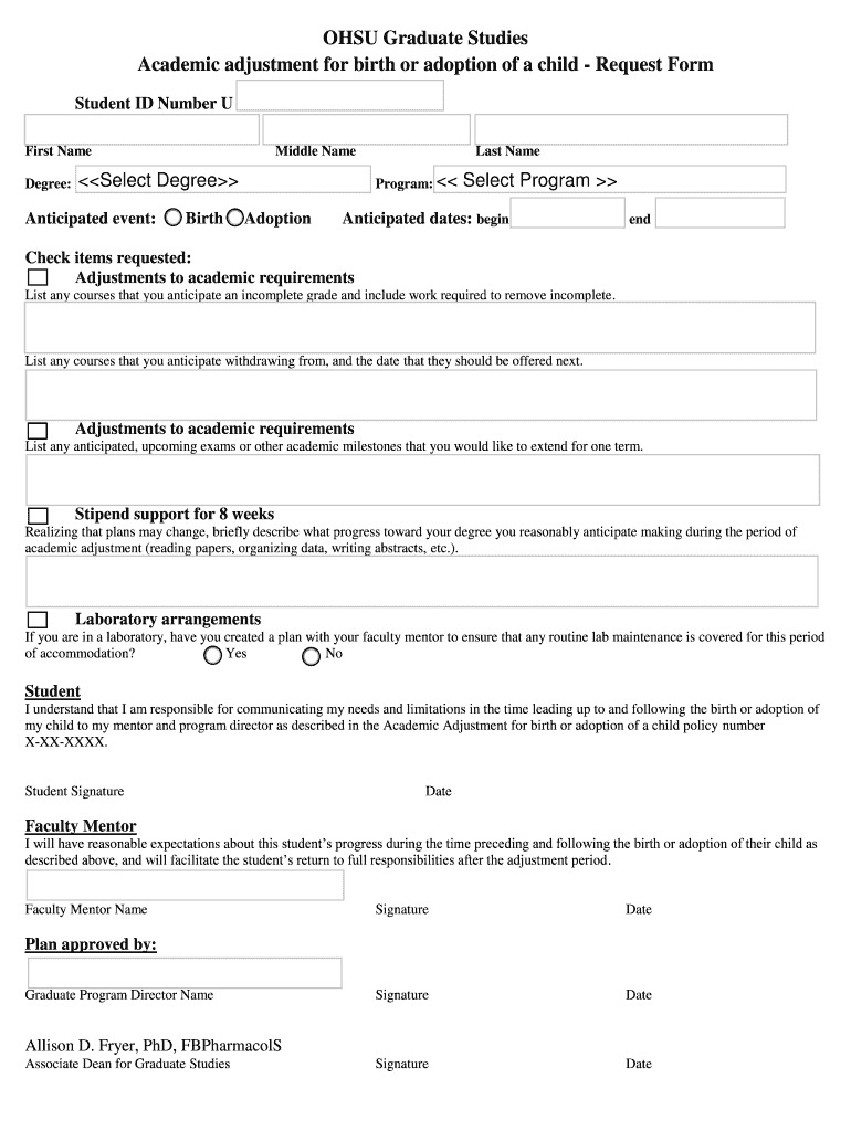 Get the free OHSU Graduate Studies Academic adjustment for birth or adoption bb - ohsu