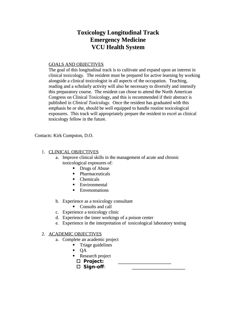What is Clinical Toxicology - VCU Department of Emergency Medicine Form?