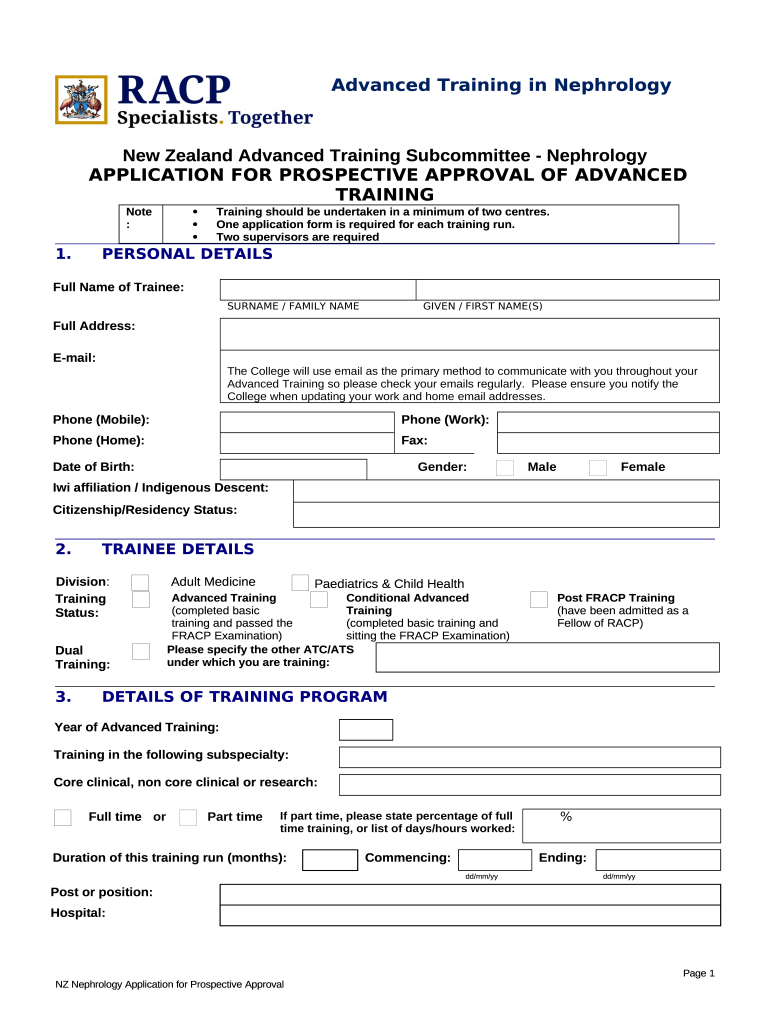 The New Zealand Advanced Training Subcommittee in Medical ... is a writable document needed to be submitted to the required address in order to provide specific info. It must be filled-out and signed, which is possible manually in hard copy, or via a particular software such as PDFfiller. It helps to complete any PDF or Word document directly from your browser (no software requred), customize it depending on your requirements and put a legally-binding e-signature. Once after completion, user can send the New Zealand Advanced Training Subcommittee in Medical ... to the relevant individual, or multiple ones via email or fax. The blank is printable as well because of PDFfiller feature and options presented for printing out adjustment. In both electronic and in hard copy, your form should have a organized and professional appearance. You may also turn it into a template for further use, so you don't need to create a new blank form from scratch. All that needed is to amend the ready form.